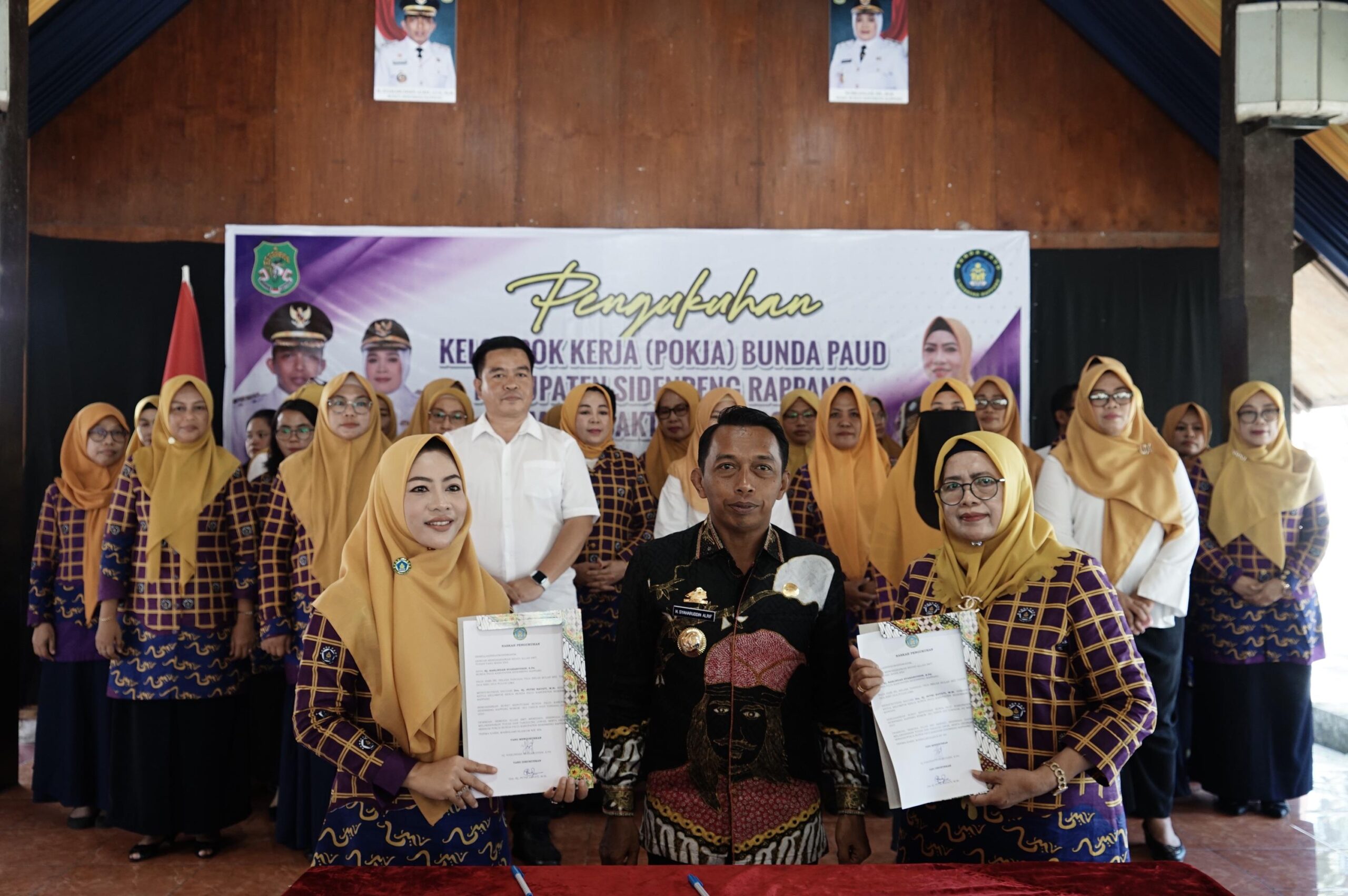 Pengukuhan dipimpin langsung oleh Bunda PAUD Kabupaten Sidrap, Hj. Haslinda Syaharuddin, disaksikan Bupati Sidrap, H. Syaharuddin Alrif.