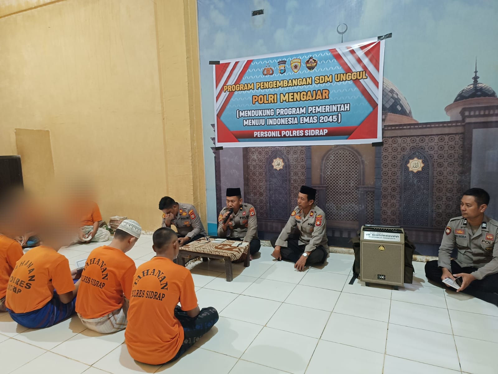 SIDRAP.KOMPAKNEWS— Polres Sidrap melalui Program “SDM Unggul Polri Mengajar” kembali menunjukkan komitmennya dalam pembinaan Sumber Daya Manusia (SDM), termasuk kepada para tahanan. Kegiatan ini dilaksanakan di ruang tahanan Polres Sidrap dengan mengusung tema “Mendukung Program Pemerintah Menuju Indonesia Emas 2045”. Jumat (16/05/25).