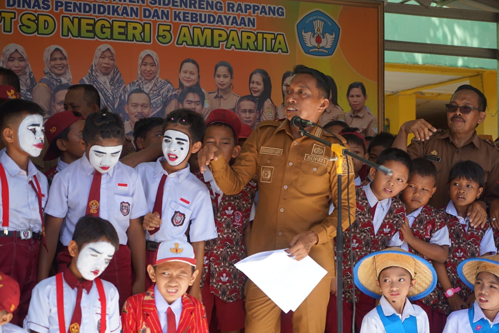 Bupati Syaharuddin juga mengingatkan pentingnya menjaga kebersihan sekolah serta peran aktif guru dalam membina siswa.