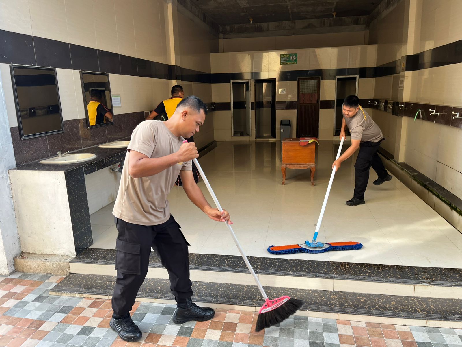 Dengan semangat gotong royong dan penuh keikhlasan, personel Polsek dan Polsubsektor bahu-membahu membersihkan halaman, ruang ibadah, hingga area sekitar tempat suci.