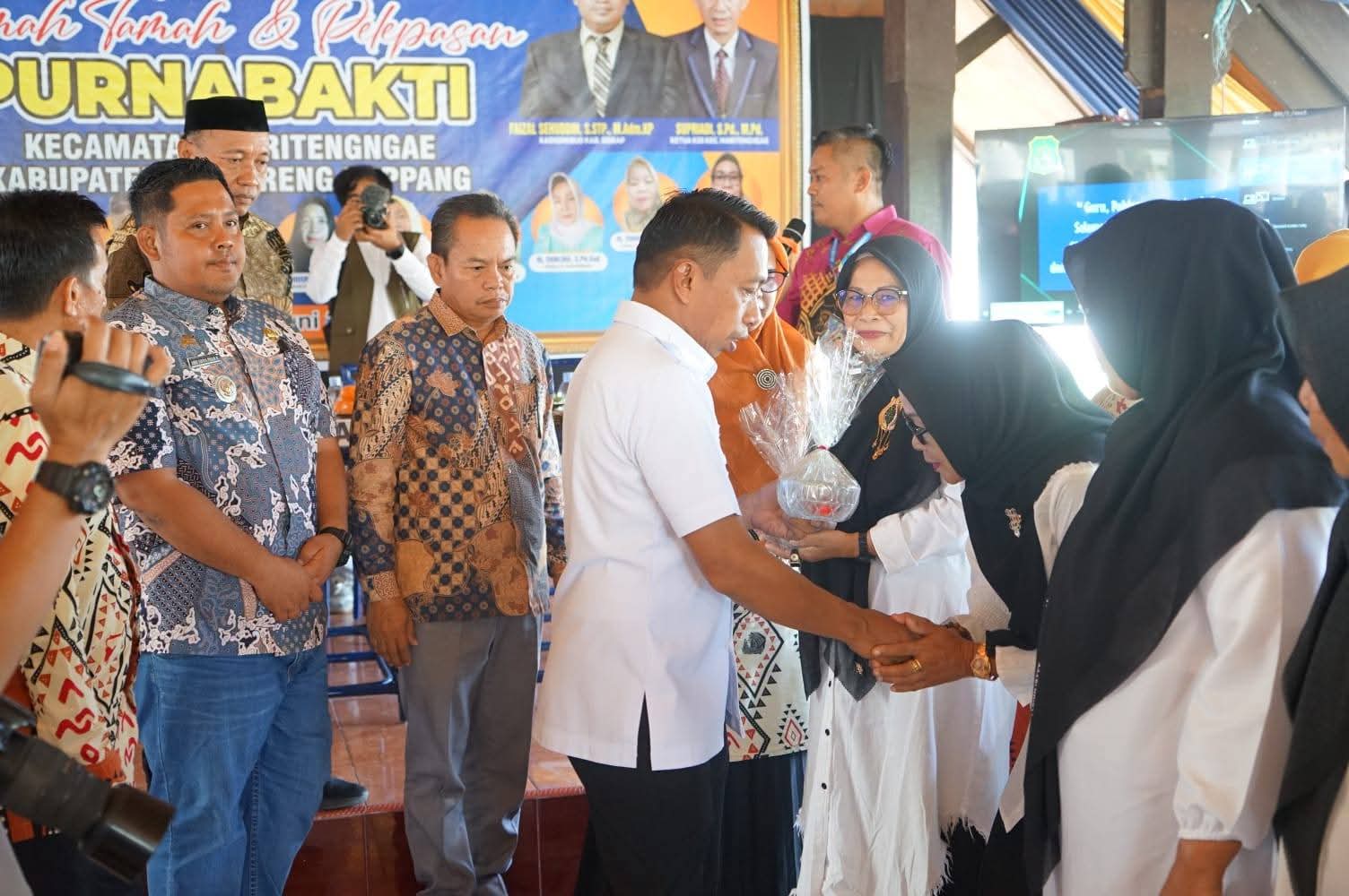 SIDRAP. KOMPAKNEWS.My.id— Suasana haru menyelimuti Baruga Rumah Jabatan Bupati Sidrap saat 13 sosok inspiratif dari dunia pendidikan resmi dilepas dalam acara purnabakti, Kamis (18/6/2025). Mereka terdiri atas 9 guru, 1 pengawas, 2 kepala TK, dan 1 tenaga kebersihan sekolah dari lingkup Kecamatan Maritengngae, yang telah mengabdikan diri puluhan tahun dalam mencerdaskan kehidupan bangsa.