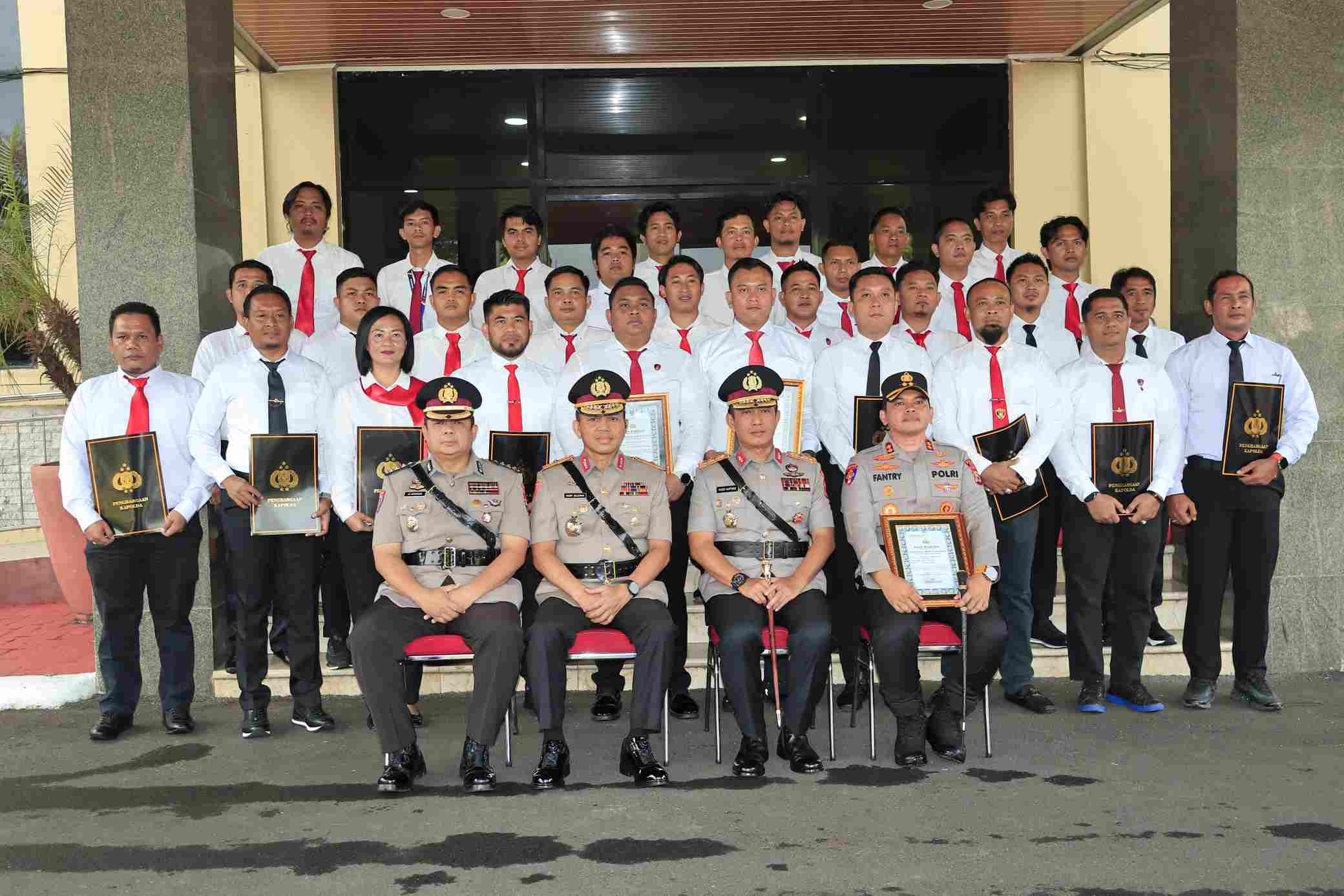 Adapun sebagai perwakilan penerima penghargaan AKBP Dr. FANTRY TAHERONG, S.H., S.I.K., M.H. Kapolres Sidrap beserta 18 personel, AKBP EDY SABHARA MANGGABARANI, S.I.K. Kapolres Pinrang beserta 48 personel Ditreskrimum dan Polres Palopo, AKP LUMBRIAN HAYUDI PUTRA, S.I.K., M.H. Kasi Pammat Ditsamapta beserta 5 personel, AKP BAHTIAR, S.Sos., S.H., M.H. Kasatreskrim Polres Gowa beserta 47 personel dan IPTU DIDI SUTIKNO MUGIARNO, S.Tr.K., CPHR. Kasatresnarkoba Polres Sidrap beserta 14 personel.