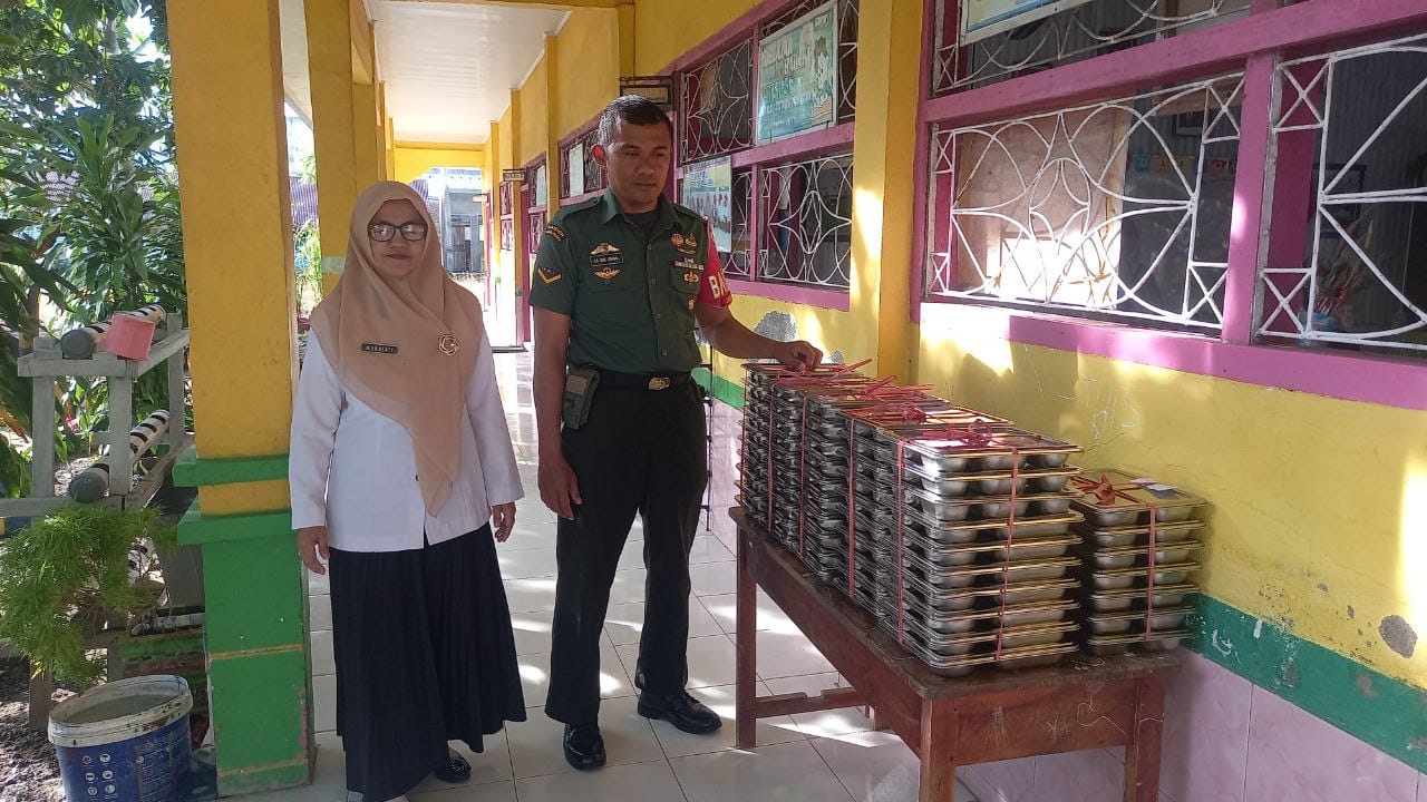 SIDRAP. KOMPAKNEWS.My.id- Babinsa Koramil 03/Maritengngae Serda La Ode Zainal dan Babinsa Koramil 04/Watang Pulu Serka Asdar dan Serda Irfan Idrus membantu penyaluran Makan Bergizi Gratis (MBG) ke Sekolah Sekolah di Wilayah Kab. Sidrap, Rabu. (25/06/2025).