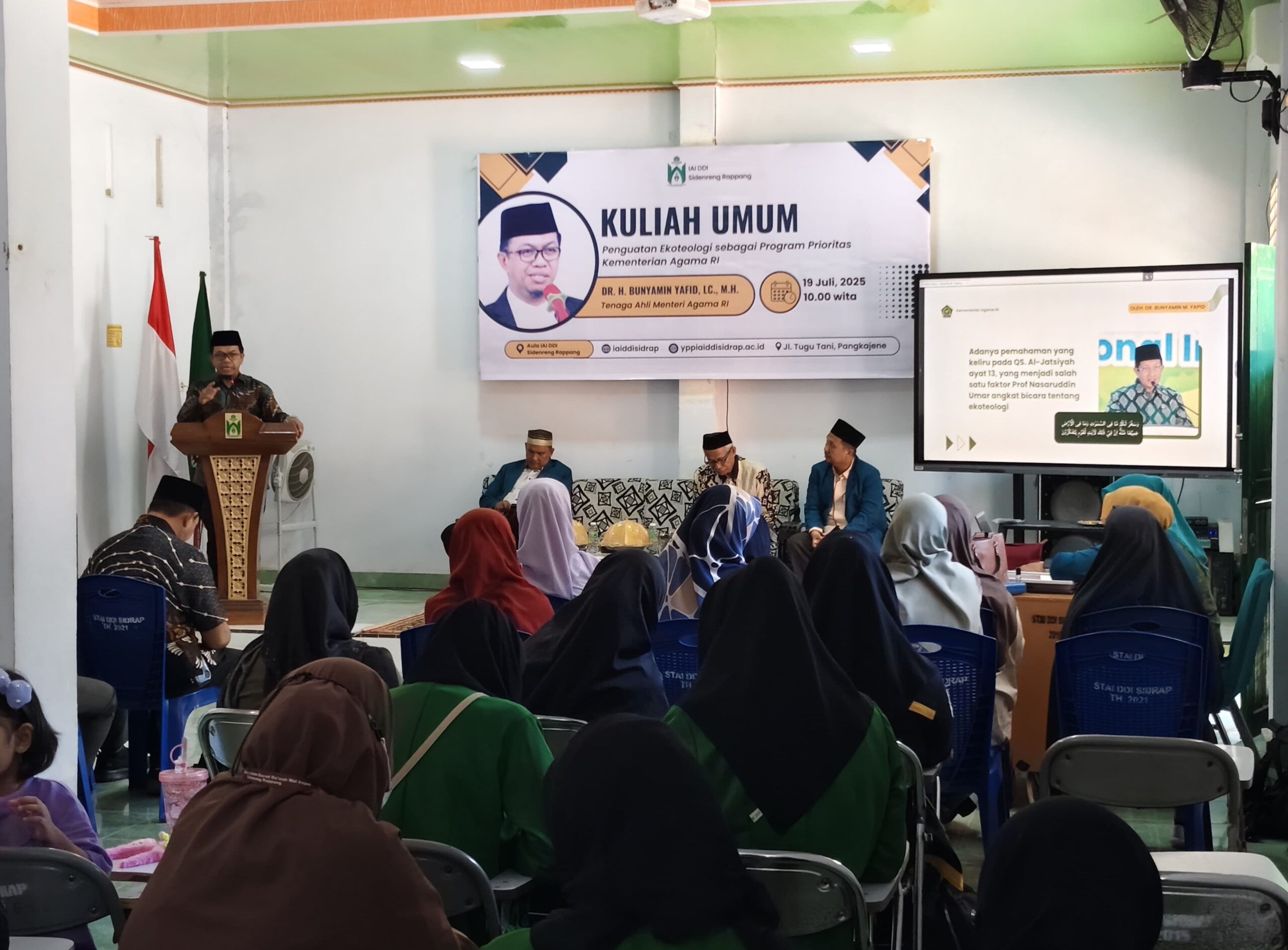 SIDRAP.KOMPAKNEWS.My.id– Dalam kuliah umum yang digelar di Aula IAI DDI Sidrap, Dr. H. Bunyamin Yafid, Lc., M.H., Tenaga Ahli Menteri Agama RI, menyampaikan pesan penting mengenai peran agama dalam menjaga keseimbangan lingkungan, Sabtu, 19 Juli 2025.