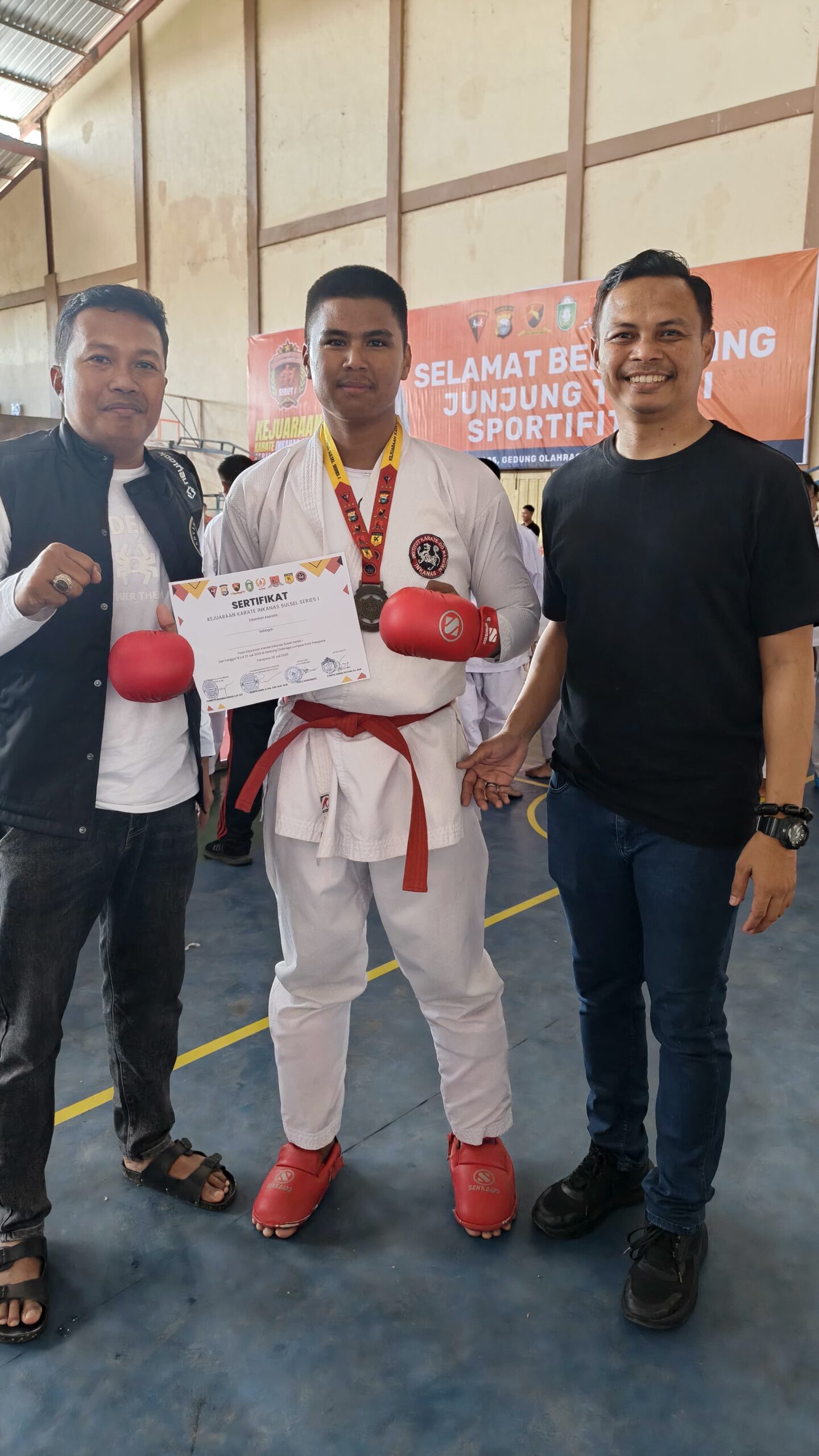 SIDRAP. KOMPAKNEWS.My.id—Bripda La Majeng Anggota Sat. Samapta Polres Sidrap berhasil meraih juara 1 pada kejuaraan Karate Inkanas Sulsel Series I Tahun 2025 pada kategori festival + 70 kg komite Polri yang digelar di GOR Mandiri Lompoe Kota Parepare, Minggu (20/7/25) pagi