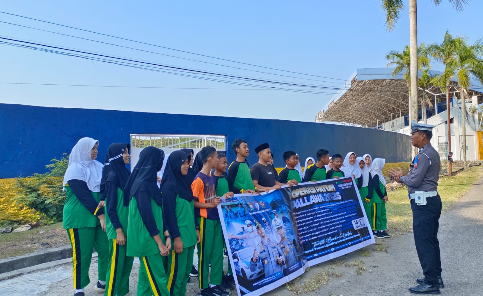 SIDRAP. KOMPAKNEWS.My.id- Satuan Lalu Lintas Polres Sidrap kembali menggelar kegiatan sosialisasi Operasi Patuh Pallawa 2025 kepada pelajar, kali ini sat Lantas Polres Sidrap menggelar kegiatan sosialisasi di Halaman Stadion Ganggawa Kabupaten Sidrap dengan menyasar para pelajar MTSN 1 Kabupaten Sidrap, Rabu (23/7/25) Pagi