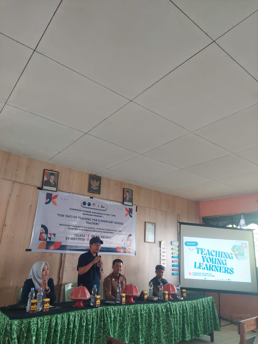 SIDRAP. KOMPAKNEWS. My. Id— Dalam upaya meningkatkan kompetensi guru dalam mengajar Bahasa Inggris, Koordinator Wilayah (Korwil) Pendidikan Kecamatan Watang Pulu bekerja sama dengan mahasiswa Universitas Muhammadiyah Rappang (UMR) menggelar pelatihan bertema “Fun English Teaching for Elementary School Teachers”, Selasa (29/7/2025).