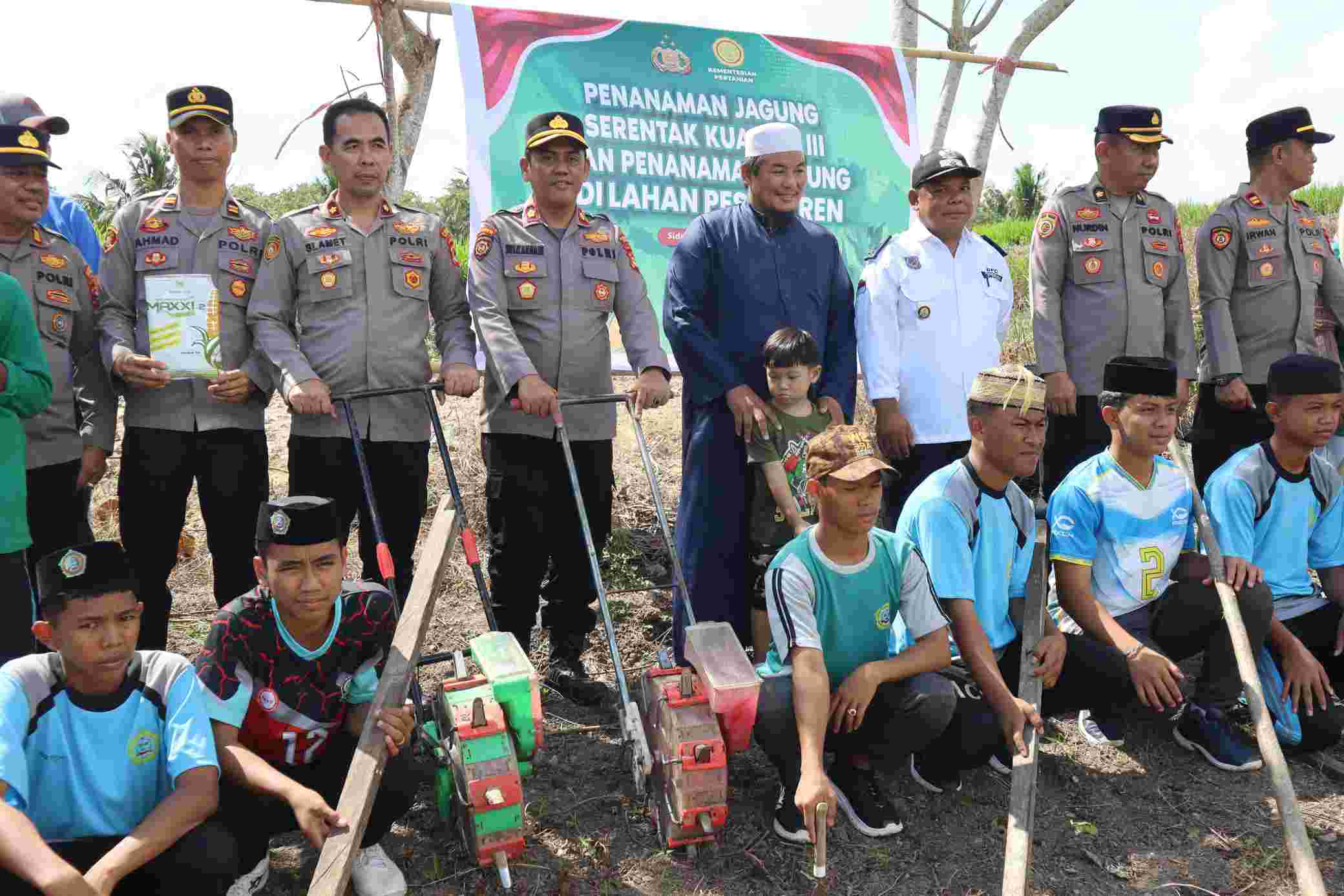 SIDRAP.KOMPAKNEWS.My.id- Wakapolres Sidrap Kompol Sulkarnain memimpin langsung kegiatan penanaman bibit jagung di lahan produktif milik Pondok Pesantren Nurul Azhar Desa Talawe Kecamatan Watang Sidenreng Kabupaten Sidrap, Rabu (6/8/28) pagi. Kegiatan ini merupakan bagian dari dukungan nyata terhadap program pemerintah dalam rangka mendukung ketahanan dan swasembada pangan nasional