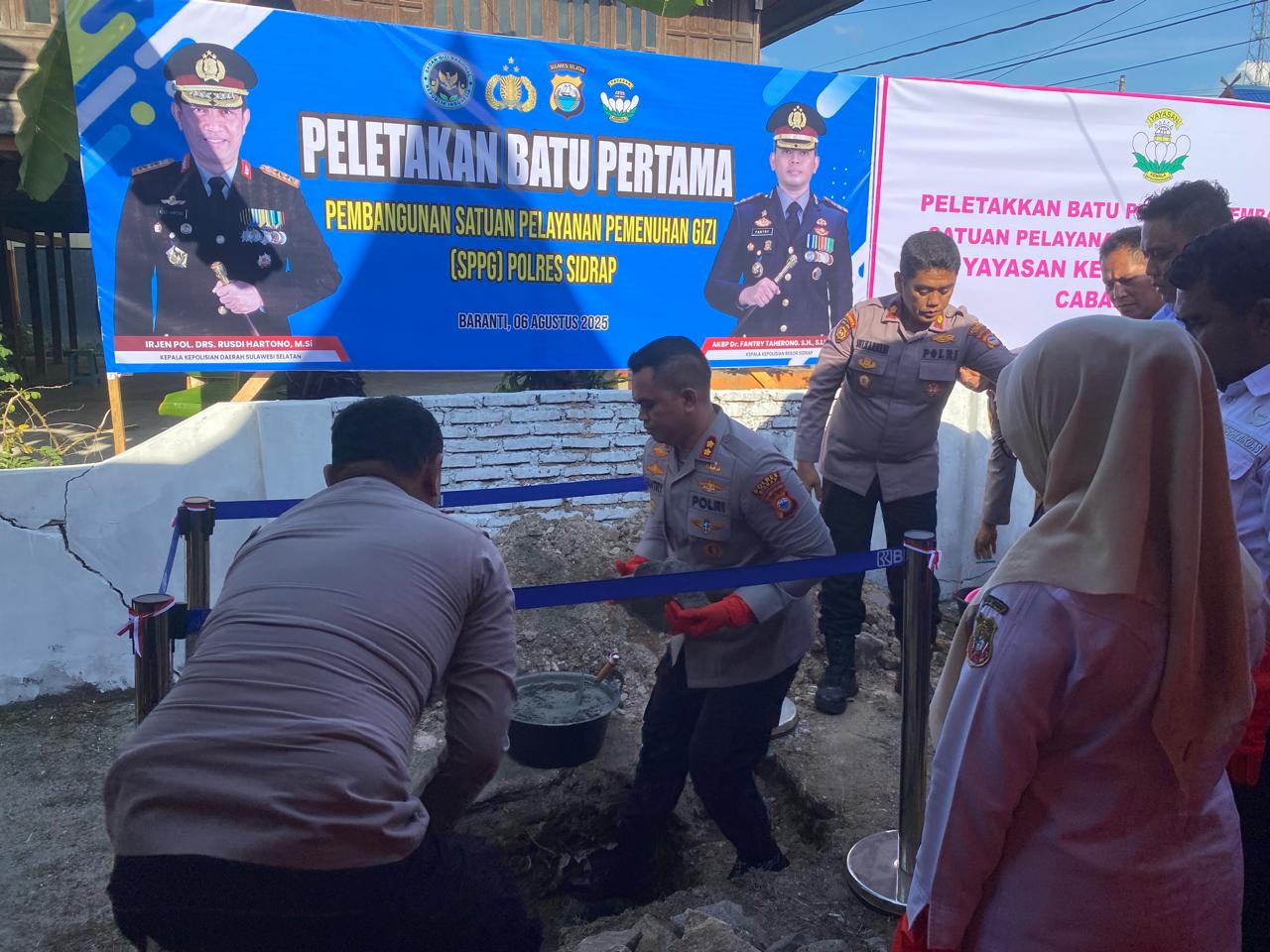 SIDRAP. KOMPAKNEWS. My. Id- Kapolres Sidrap Akbp Fantry Taherong menghadiri kegiatan groundbreaking (peletakan batu pertama) pembangunan Gedung Satuan Pelayanan Pemenuhan Gizi (SPPG) Polres Sidrap di Wilayah Kecamatan Baranti, Rabu (6/8/25) siang