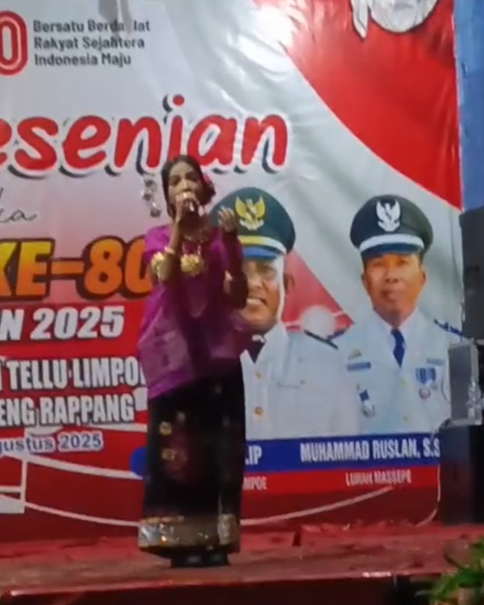 SIDRAP.KOMPAKNEWS.My.id— Penampilan nyanyi solo oleh Wulan, siswi UPT SMPN 1 Tellu Limpoe, sukses memukau penonton dalam Malam Pentas Seni yang digelar di Lapangan Sepak Bola Massepe, Kecamatan Tellu Limpoe, Kabupaten Sidrap, Sabtu (9/8/2025).
