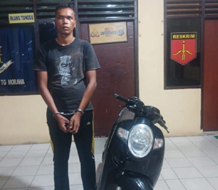 DELISERDANG. KOMPAKNEWS. My. Id—Personel Polsek Tanjung Morawa meringkus seorang tersangka pelaku pencurian sepeda motor milik driver Ojek Online (Ojol). Dari tersangka, petugas mengamankan satu unit sepeda motor Honda Scoopy milik korban, Rabu (13/8/2025).