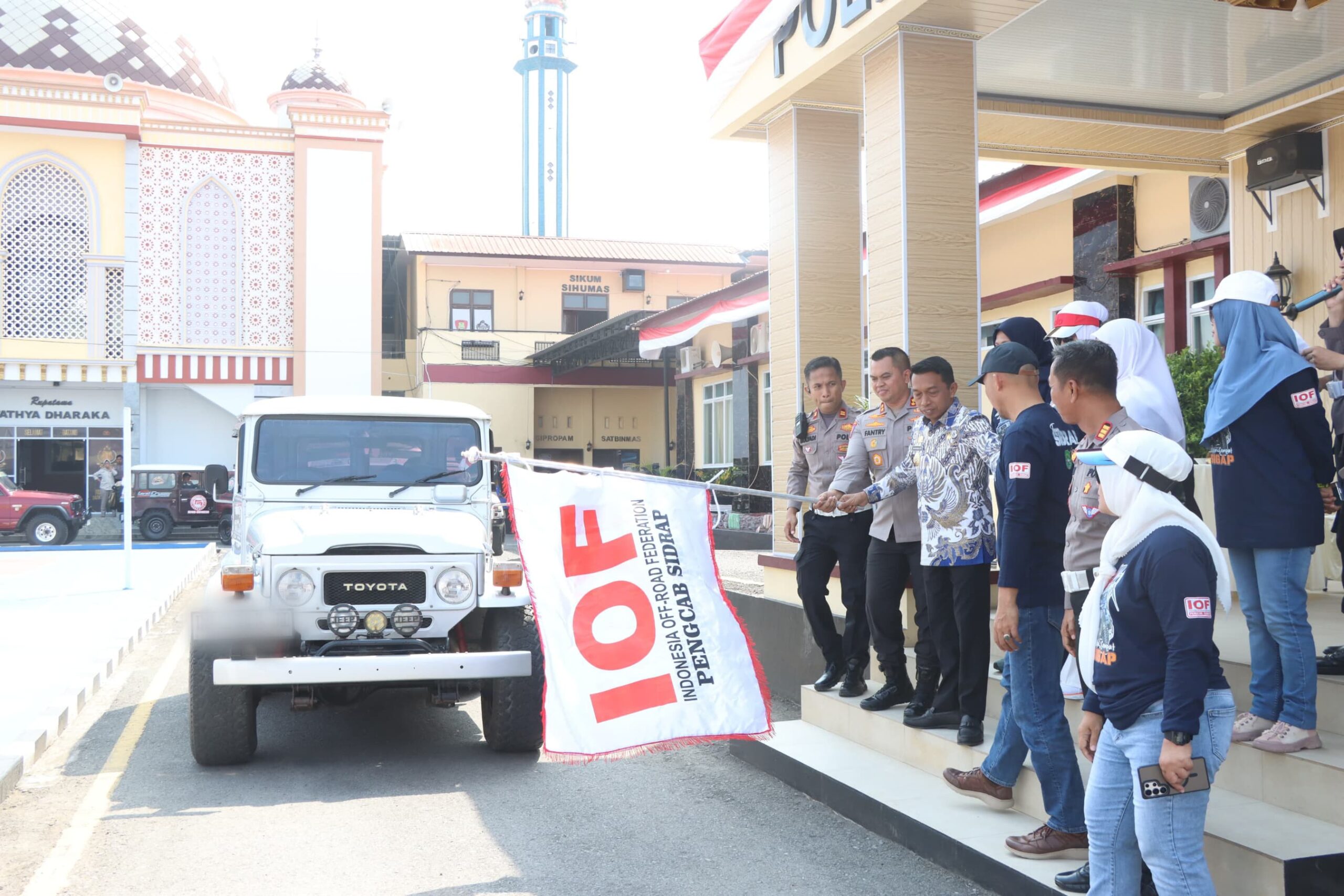 SIDRAP. KOMPAKNEWS. My. Id– Dalam rangka mendukung kegiatan Bhayangkara Merdeka yang diselenggarakan Polda Sulsel, Kapolres Sidrap AKBP Dr. Fantry Taherong, S.H., S.I.K., M.H bersama Bupati Sidrap H. Syaharuddin Alrif, S.I.P., M.M secara resmi melepas keberangkatan puluhan mobil Offroader dari Indonesia Off-Road Federation (IOF) Pengcab Sidrap, Kamis (21/8/2025).
