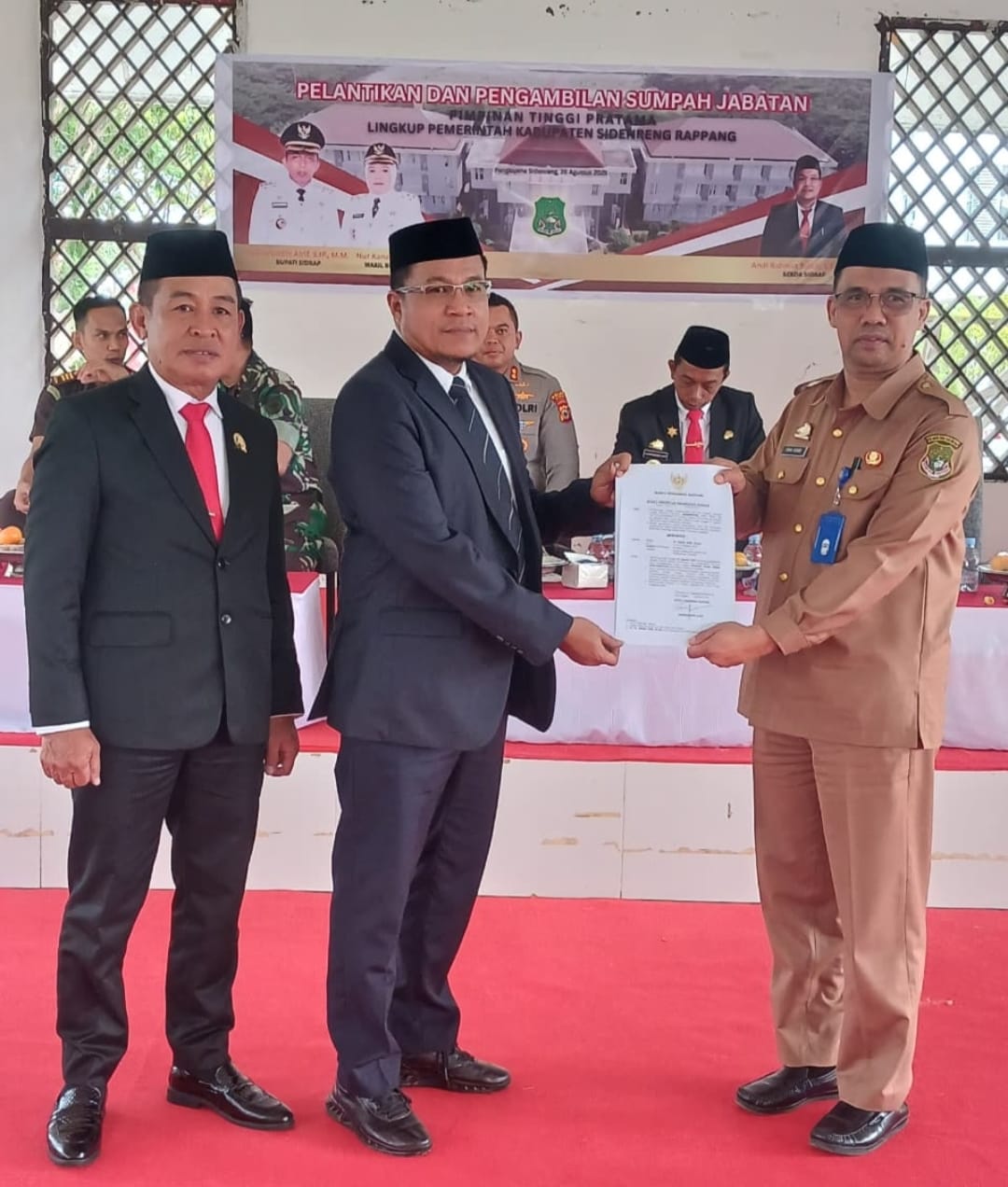 Penyerahan Surat Keputusan (SK) pengangkatan dilakukan langsung oleh Sekretaris Daerah Sidrap, Andi Rahmat Saleh, S.IP, M.M, mewakili Bupati Sidrap H. Syaharuddin Alrif, dalam acara yang berlangsung di Aula Kantor Bupati Sidrap, Selasa (26/8/2025).