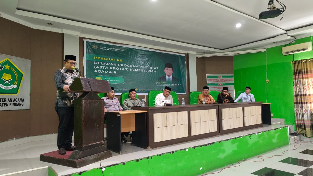 Dalam rangkaian kunjungan kerjanya di Sulawesi Selatan, Dr. Bunyamin memulai sosialisasi Asta Protas di Kementerian Agama Kota Makassar, dan pada Jumat (29/8/2025) melanjutkannya di Kantor Kemenag Kabupaten Pinrang.