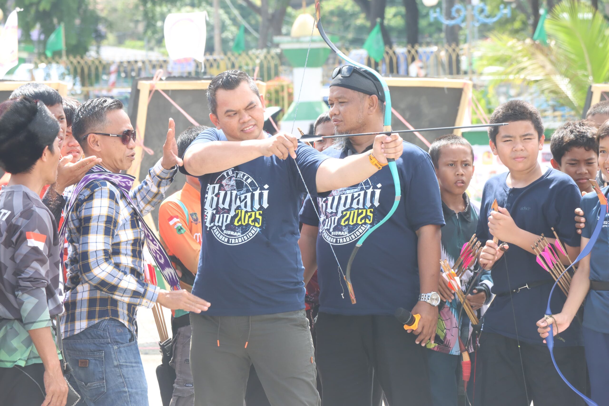 SIDRAP. KOMPAKNEWS. My. Id– Menyambut Hari Olahraga Nasional, Pemerintah Kabupaten Sidrap menggelar Turnamen Panahan Tradisional Bupati Cup 2025. Acara pembukaan yang berlangsung meriah di pelataran Masjid Agung Sidrap, Minggu (7/9/25) pagi, dibuka secara resmi oleh Bupati Sidrap H. Syaharuddin Alrif, S.I.P., M.M.