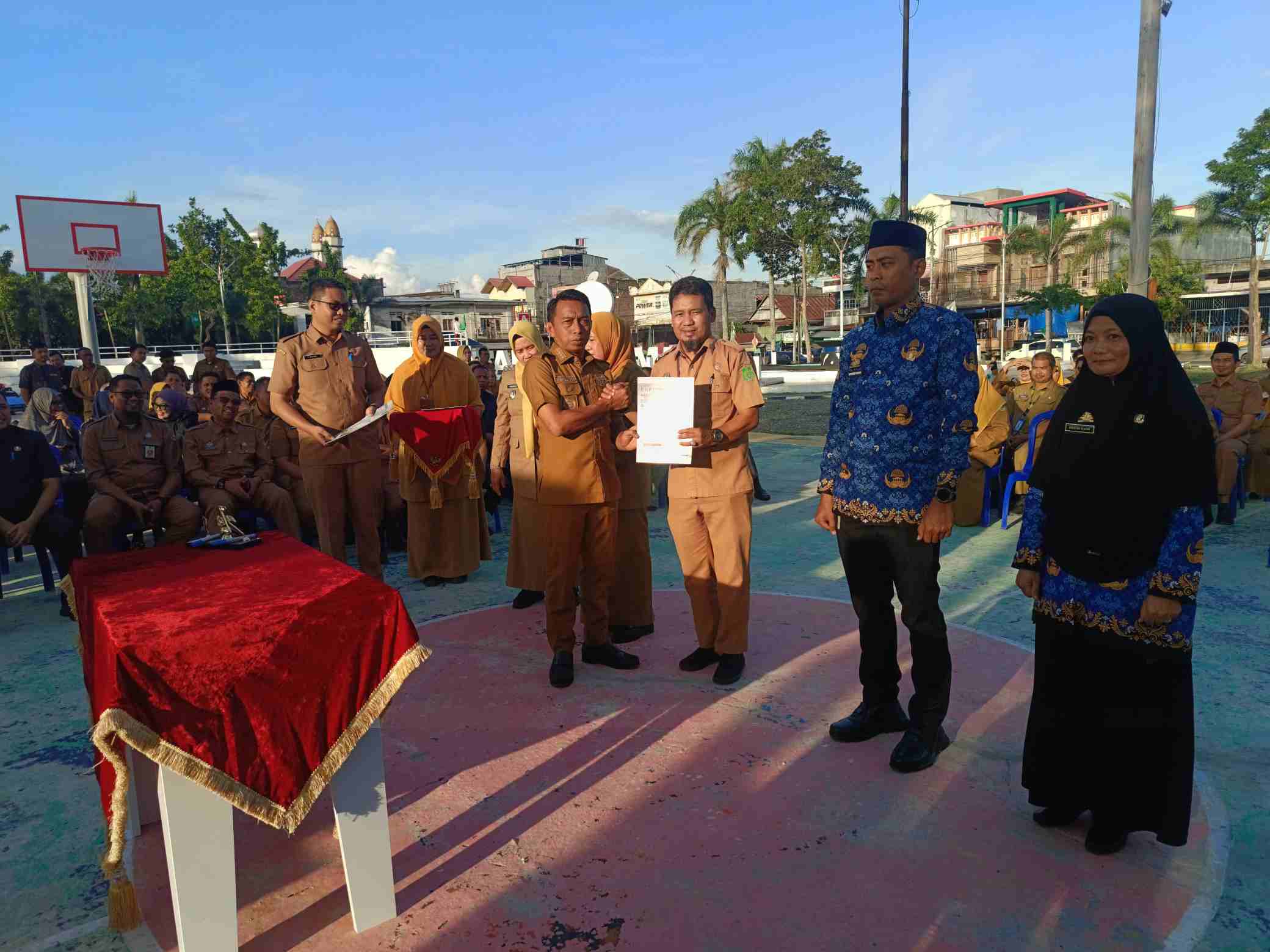 Dalam sambutannya, Bupati Syaharuddin menyampaikan selamat kepada pejabat yang mendapat penugasan baru serta tenaga PPPK yang menerima SK.