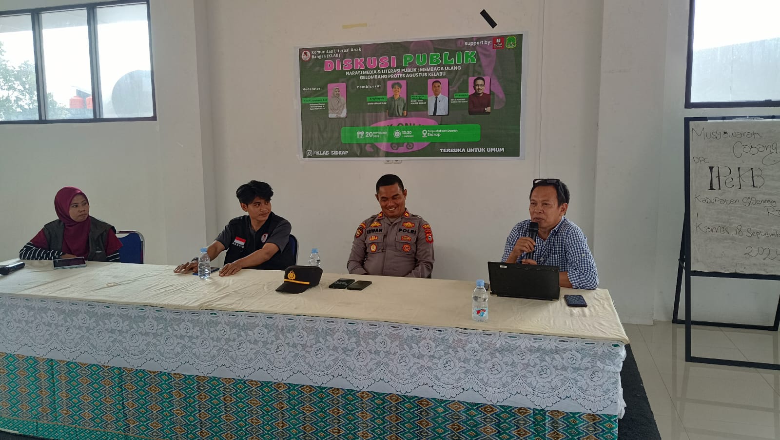 Hampir empat jam forum berlangsung, dipandu oleh Sekretaris KLAB, Aryuni Juminarni, menghadirkan pertemuan pemikiran dari pegiat literasi, aparat, hingga kalangan media. Sejak awal, Aryuni menegaskan bahwa tujuan diskusi ini bukan sekadar mengulang peristiwa, melainkan menajamkan refleksi agar masyarakat semakin kritis, aparat lebih humanis, dan media lebih beretika. “Diskusi ini adalah ruang belajar bersama. Kita ingin memastikan ruang publik kita sehat, jernih, dan inklusif,” ujarnya.