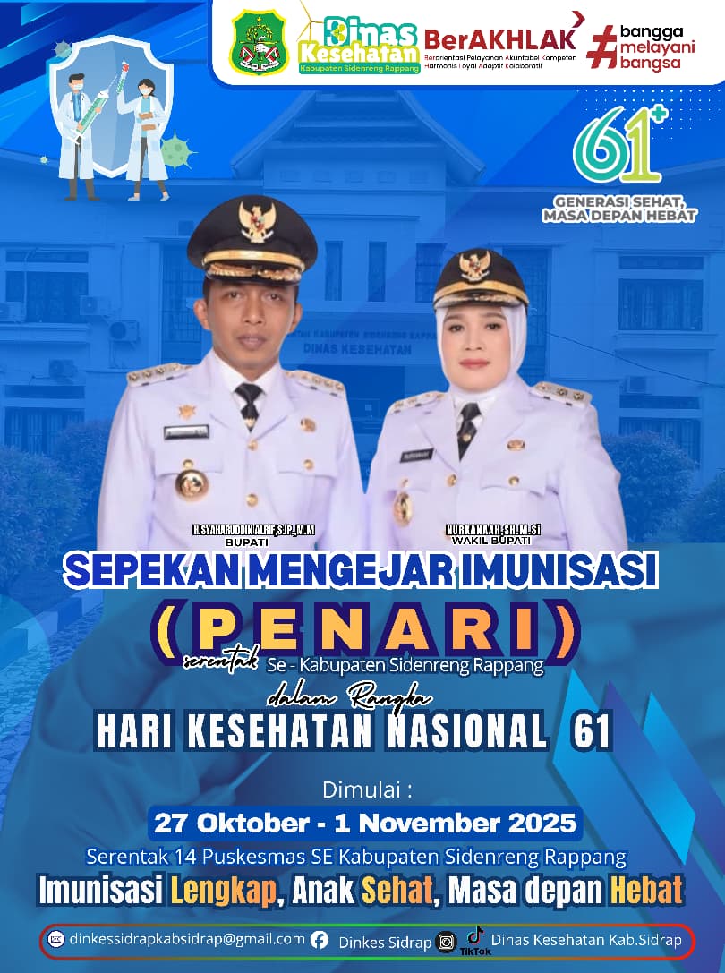 Ia menambahkan, Dinas Kesehatan Sidrap akan terus memperluas jangkauan imunisasi dan memastikan tidak ada anak yang tertinggal dari hak dasar kesehatannya. Selain itu, kegiatan dalam rangka HKN ke-61 diharapkan menjadi momentum memperkuat budaya hidup sehat di tengah masyarakat.
