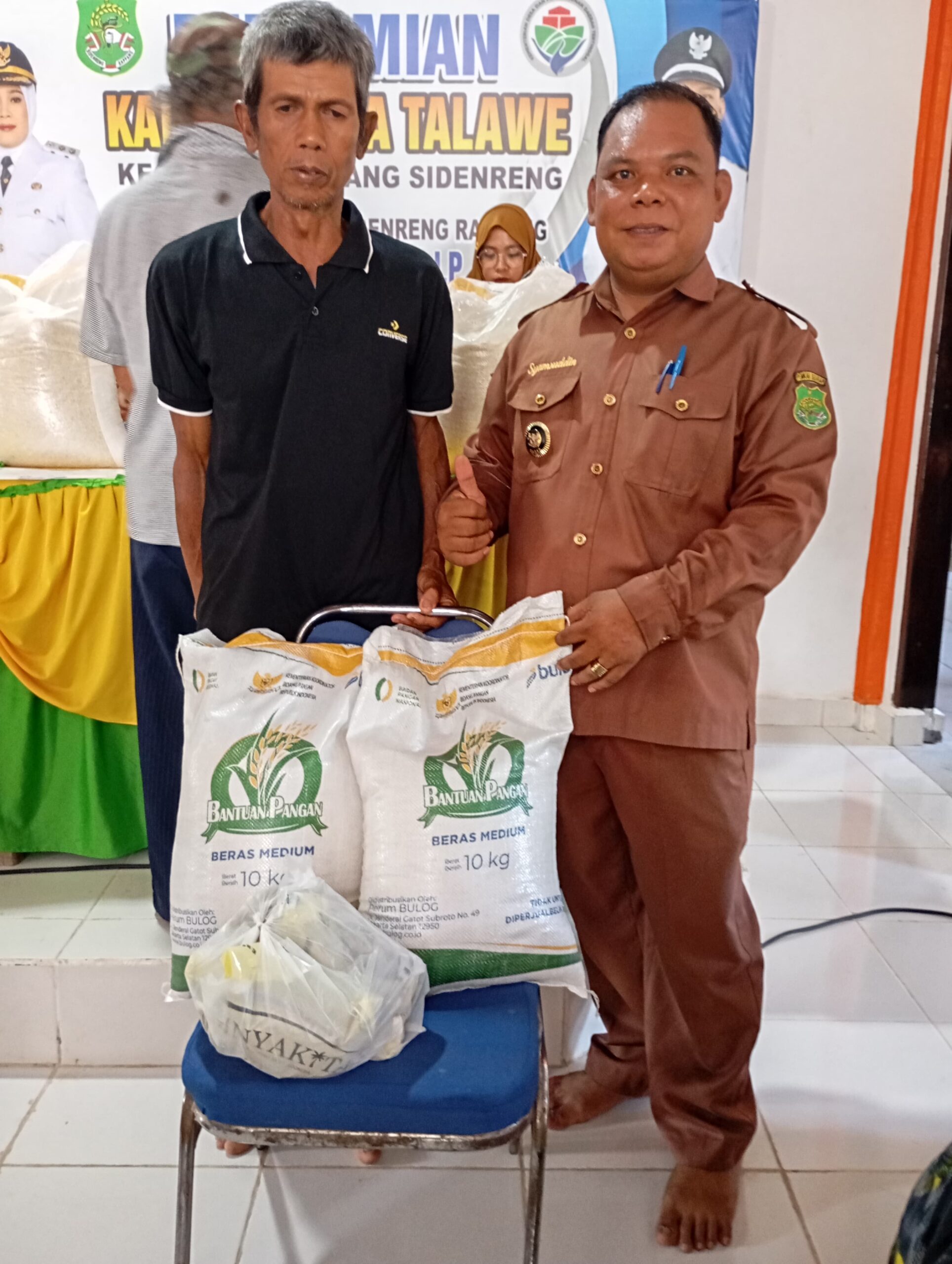 SIDRAP.KOMPAKNEWS.My.id— Kepala Desa Talawe, Syamsuddin, menyalurkan bantuan pangan kepada 72 warga penerima manfaat dalam kegiatan yang berlangsung di Kantor Desa Talawe, Senin (8/12/2025). Bantuan tersebut berupa 2 zak beras dan 4 bungkus minyak goreng ukuran 1 kg untuk setiap penerima.