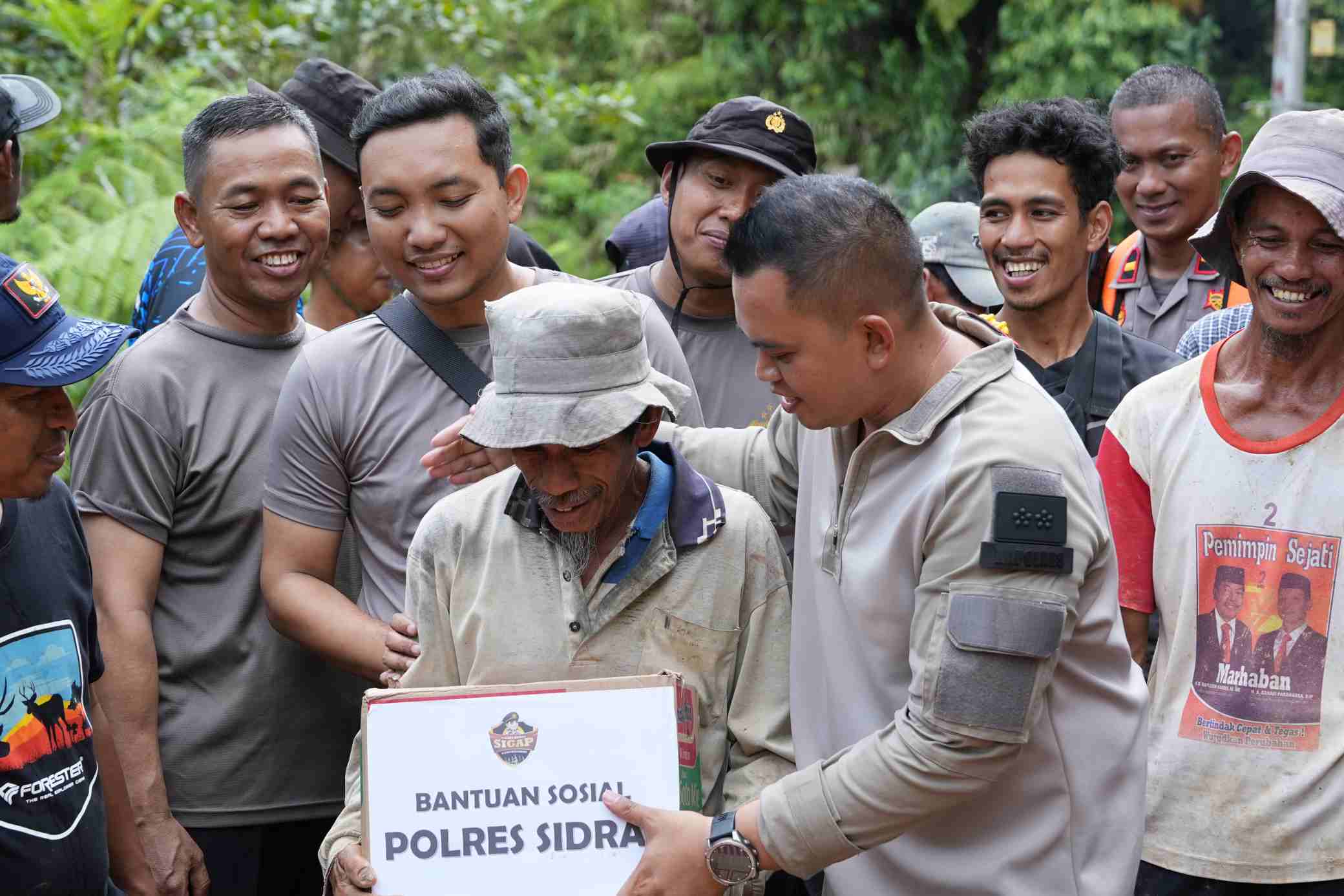 “Hari juga kami menyerahkan sembako dan peralatan bekerja seperti cangkul, skop dan gerobak dorong semoga ini bisa bermanfaat dan dimanfaatkan oleh warga, mudah-mudahan ini bisa menjadi berkah bagi kita semua” tutup Kapolres