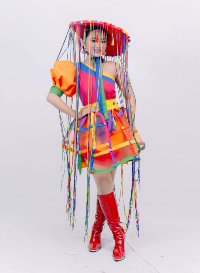 Tampil anggun dan penuh percaya diri di atas panggung, Ratu memikat perhatian penonton dan dewan juri dengan balutan kostum unik yang dipadukan topi warna-warni serta riasan wajah yang elegan. Meski tampil di hadapan penonton yang memadati arena, Ratu tetap fokus dan menampilkan catwalk yang matang.