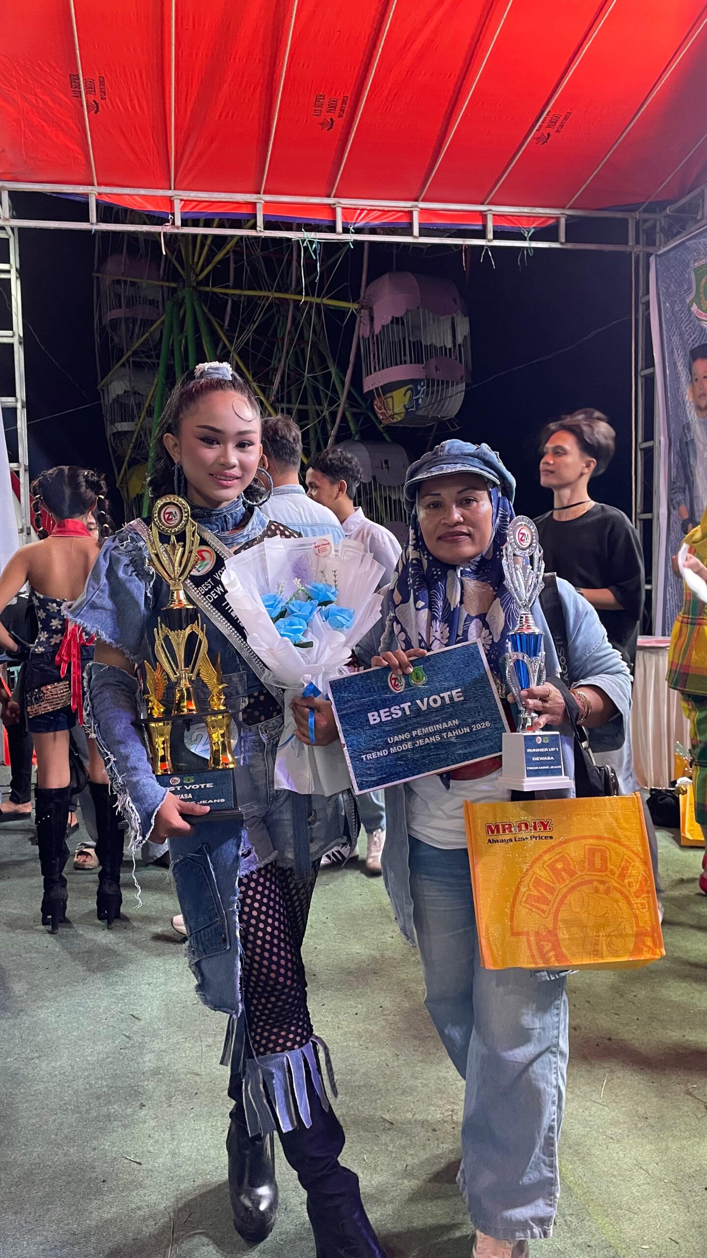 Walau terbilang baru di dunia catwalk profesional, penampilan Ratu patut diperhitungkan. Langkahnya yang anggun dan pembawaan yang matang mengantarkannya meraih dua prestasi sekaligus, yakni Runner Up 1 dan The Best Vote Kategori Dewasa Trend Model Jeans Sulselbar 2026.