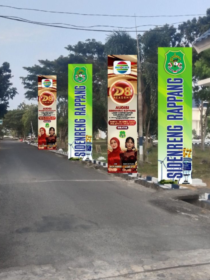 SIDRAP.KN— Persiapan pelaksanaan audisi Dangdut Academy 8 (DA8) di Kabupaten Sidenreng Rappang (Sidrap) terus dimatangkan. Sejak Selasa (21/4/2026), pemasangan berbagai alat peraga promosi seperti umbul-umbul, baliho, dan banner mulai dilakukan dan ditargetkan rampung secara serentak pada Rabu (22/4/2026).